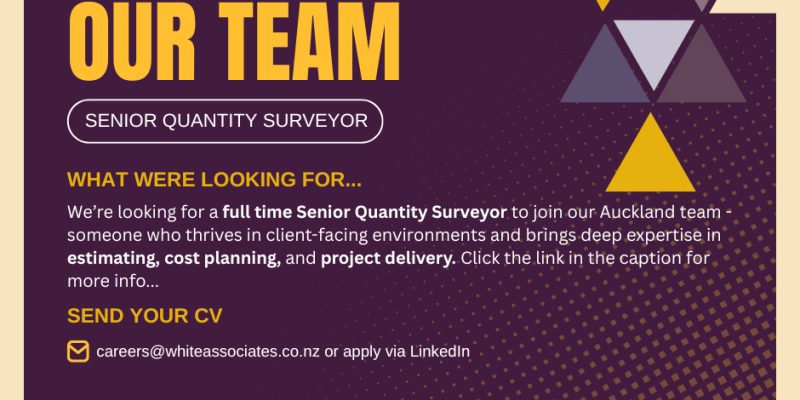 We’re looking for a full time Senior Quantity Surveyor to join our Auckland team – someone who thrives in client-facing environments and brings deep expertise in estimating, cost planning, and project delivery. See below for more details.